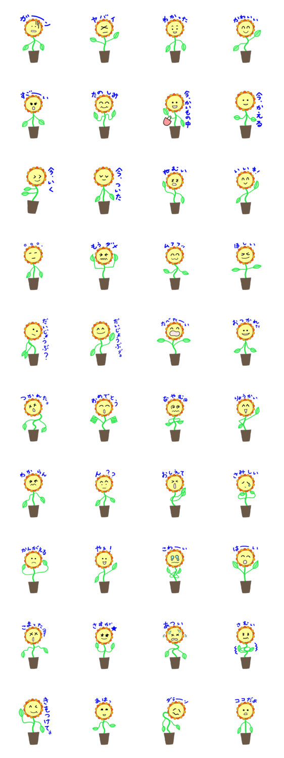 お花ちゃんが語りかけるスタンプの第二弾です。