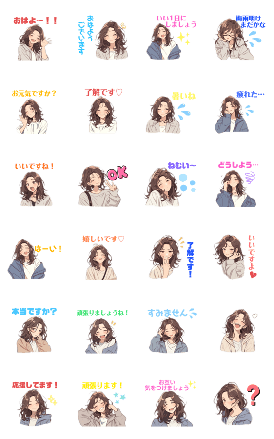 キレイなお姉さん、夏、梅雨に使えるスタンプです。敬語、あいさつにも使えます。