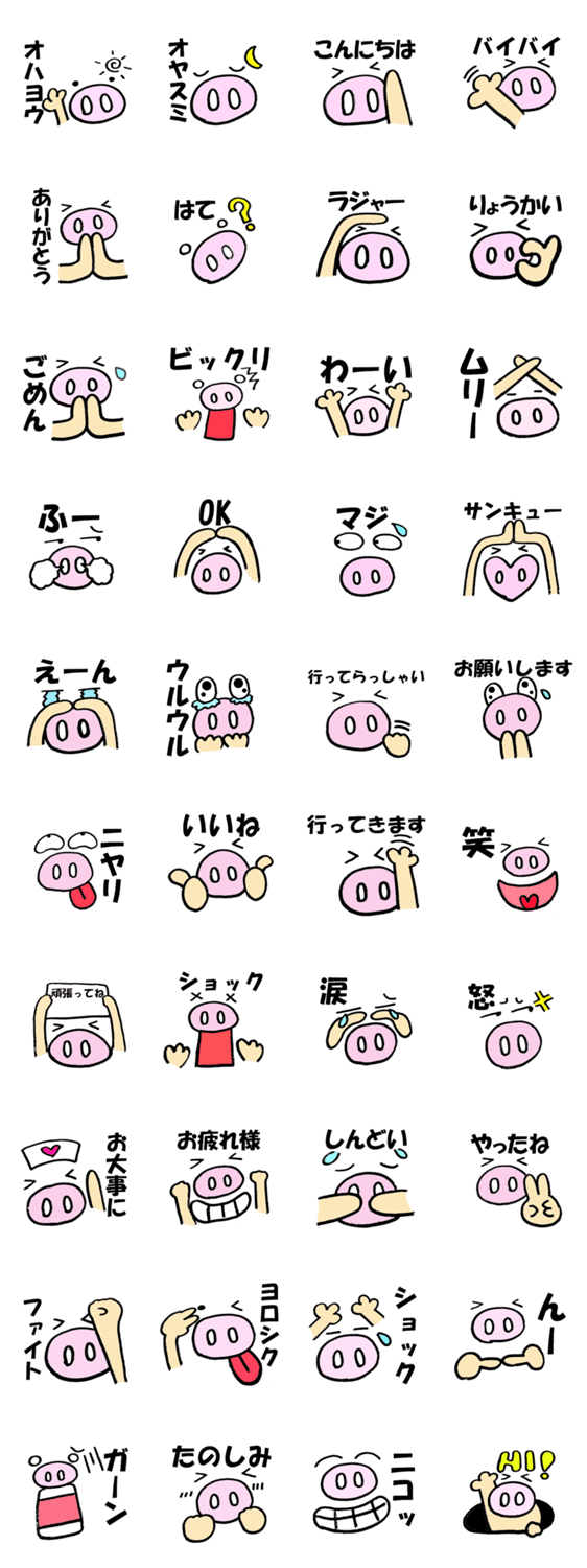 大きな文字と大きな豚の、よく使う言葉のスタンプです