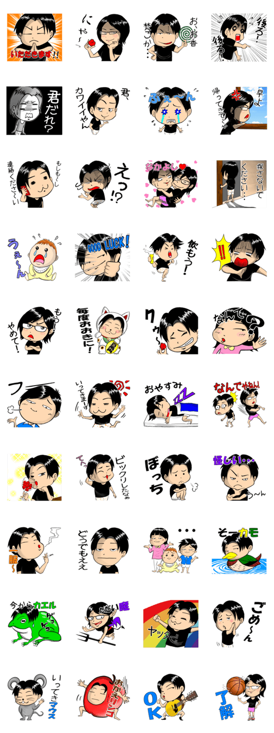 家族を守るビビらない夫を目指すハルポリパパのスタンプが登場!ファミリーも登場するよ!!賑やかなハルポリ家でトークを盛り上げよう!