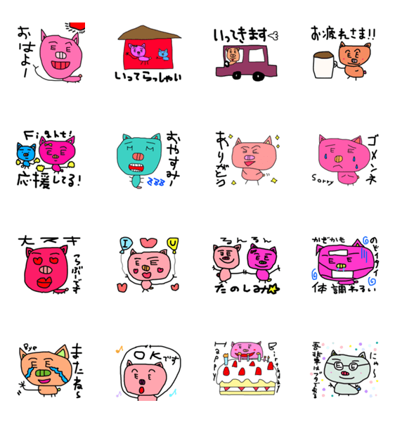 ブタさんの素晴らしき日常。 どこか憎めない下手な手書きスタンプ。