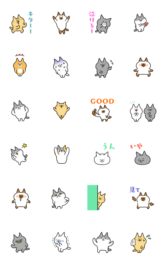 複数のスタンプを組み合わせ、並べたり重ねたり大きさを変えたりして楽しめるスタンプアレンジ機能に活用できるスタンプ!トークにたくさん猫を召喚して遊んでください。