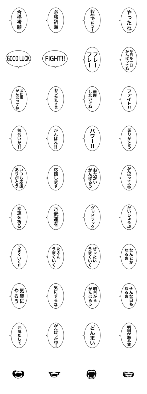 漫画キャラの口と日常使いの応援フレーズ☆アレンジ組み合わせ用シンプルなモノクロ☆歯牙イケメン魔物怪物敵キャラリップマウス唇くちびる