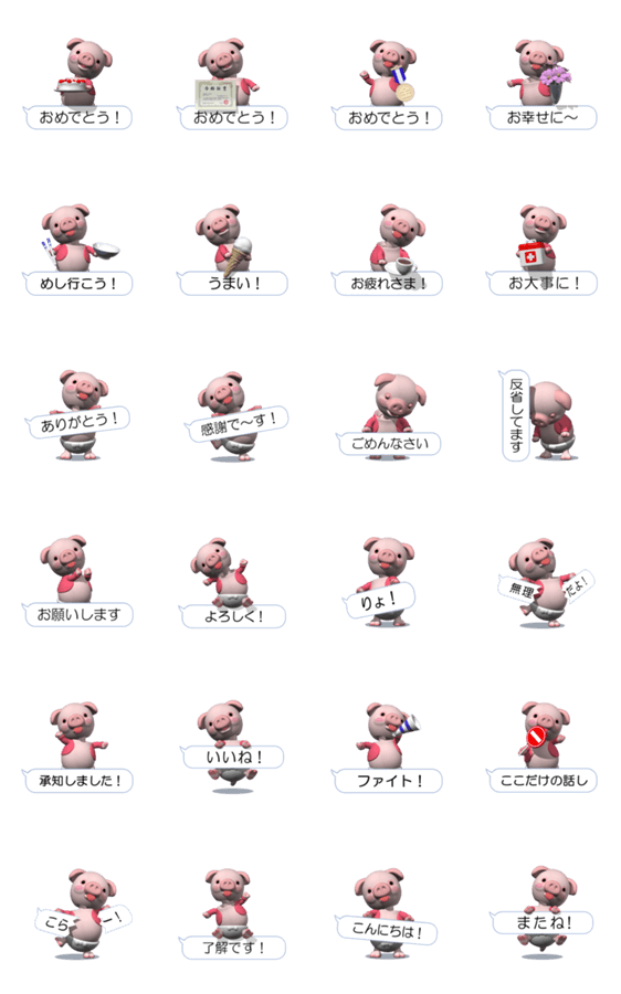 ボブルヘッドのように頭を振るピンクピッグの「アニメーションスタンプ」です。