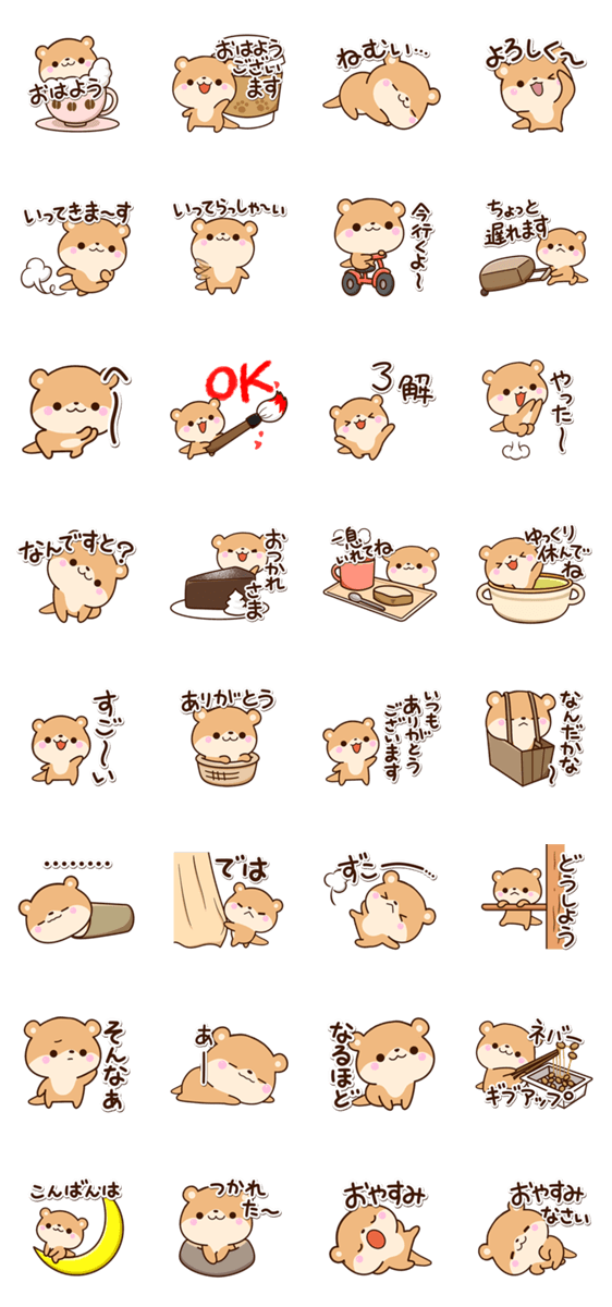 ちびっこい、かわうその、かわいく元気なスタンプ。カワウソキャラ好きな方にぜひ。毎日使う言葉等もあります【かたこ】楽しい・可愛い・明るい・おもしろい・便利・楽しい
