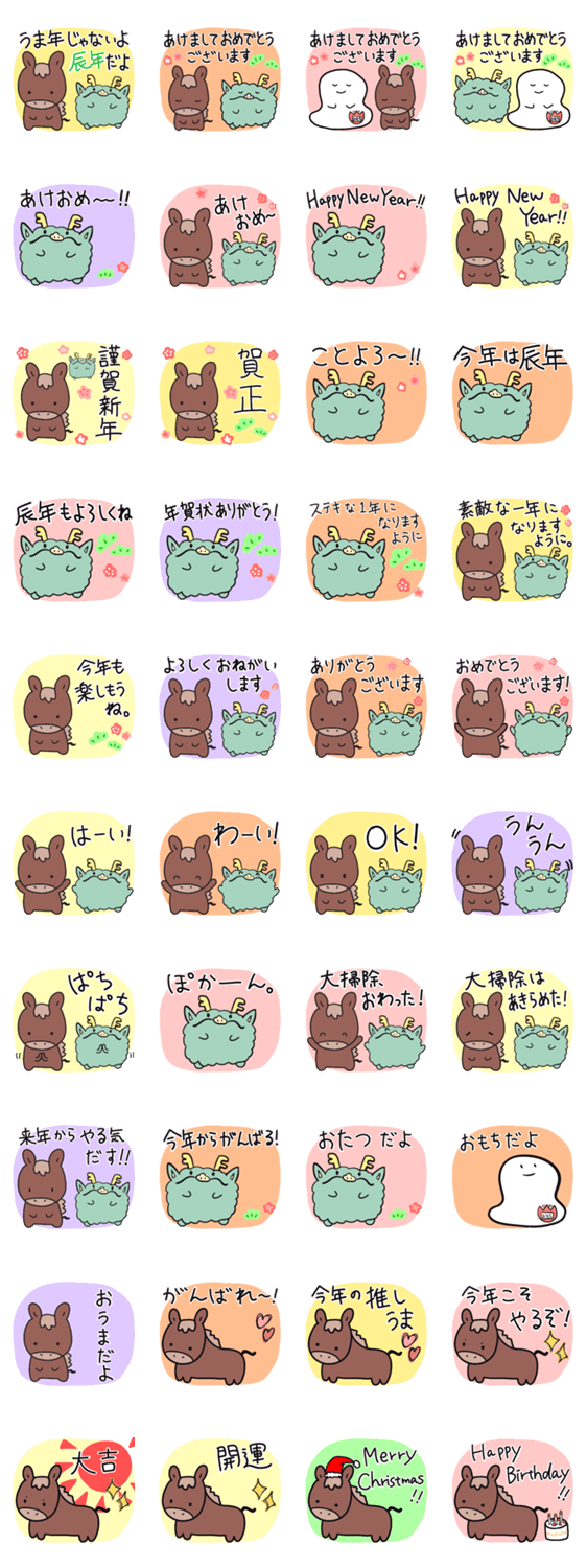 辰年のスタンプです。 2024あけおめスタンプの再販verです。 お正月以外にも1年中使えるスタンプも入ってます! 干支スタンプ。