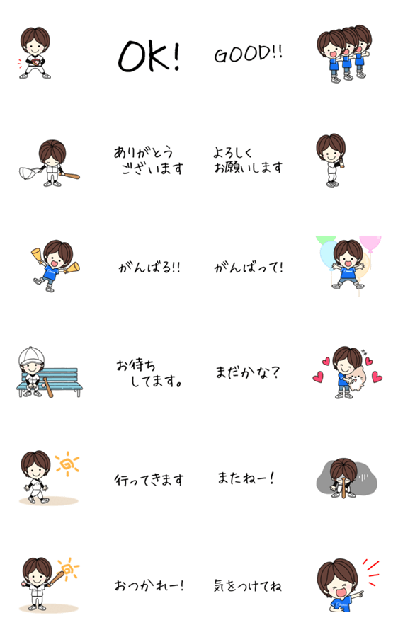 いろいろ組み合わせて使えるハピハピフレンズの野球スタンプです!【アレンジ/省スペース/男の子/甲子園/野球/球技/観戦/応援/】