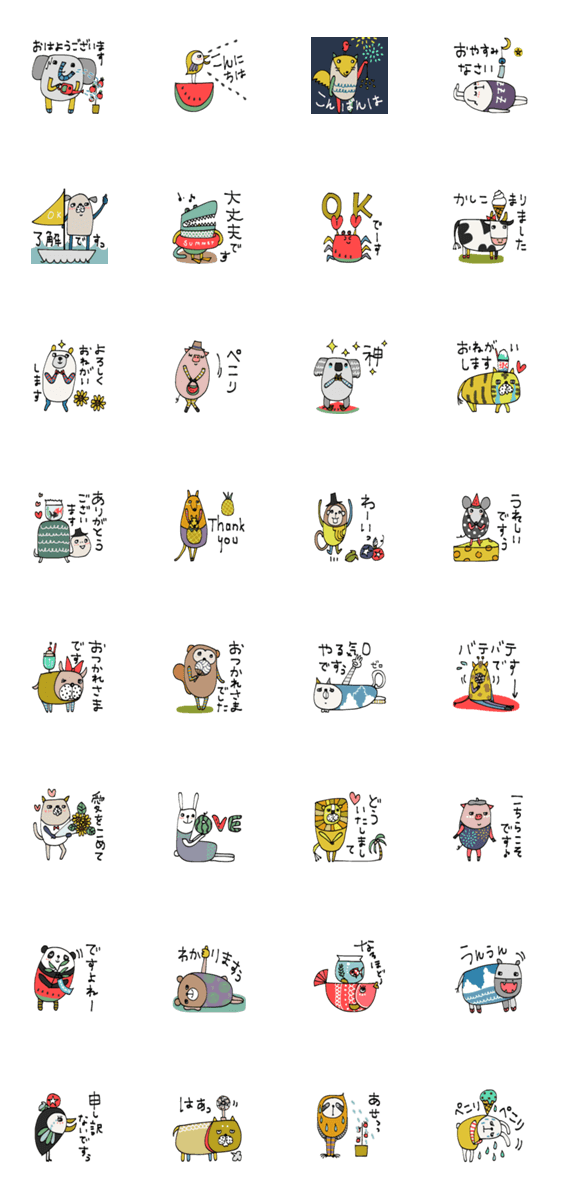個性豊かな動物達の毎年使える夏っぽいスタンプです♪
