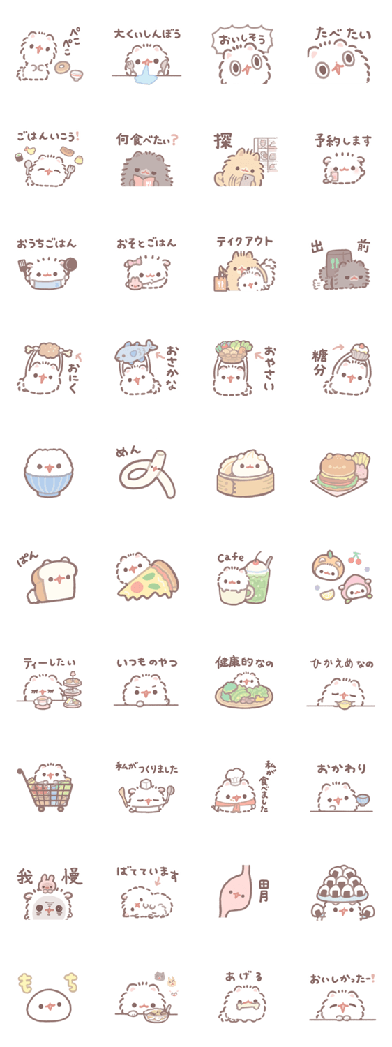 お餅と犬と人の間で生きるポメラニアン、もちのスタンプ。食べ物/食事バージョンです。