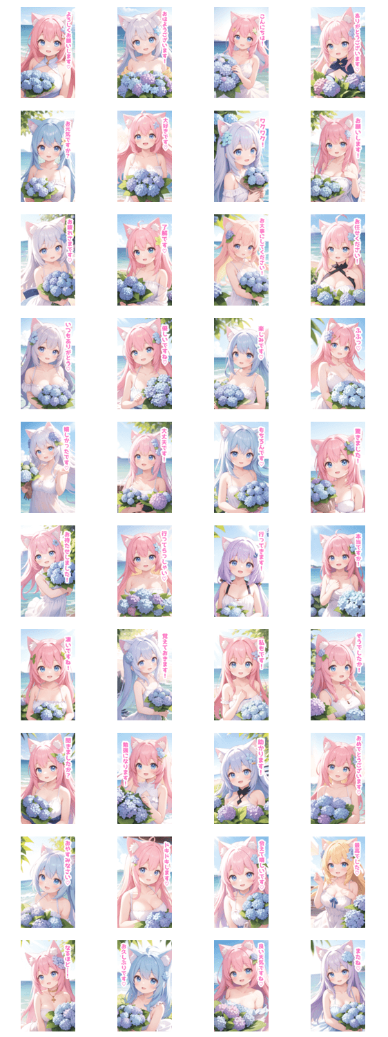 紫陽花と海と猫の女の子BIGスタンプ -LINEスタンプマニア