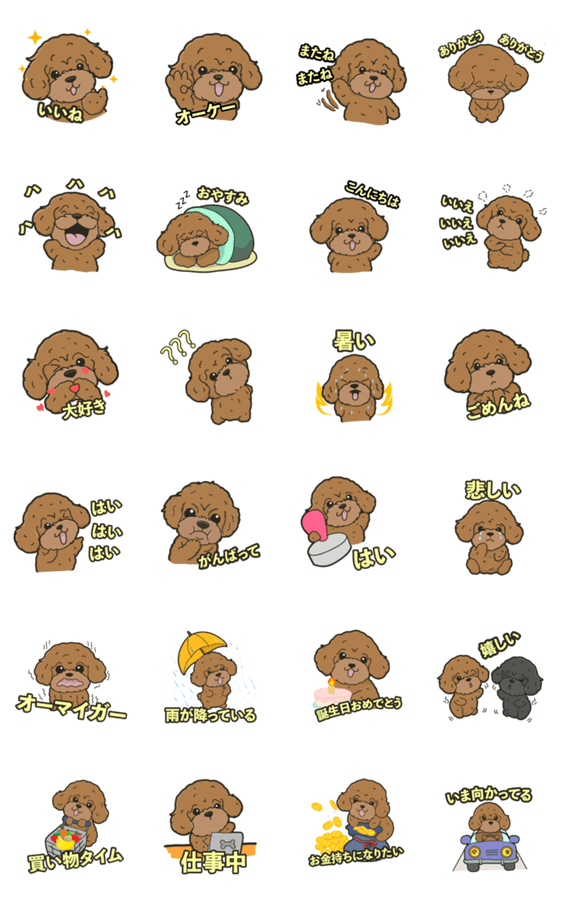 メッセージごとに心を溶かして笑顔を届けましょう。ココ・ザ・プードルのステッカーで愛を送ってください!