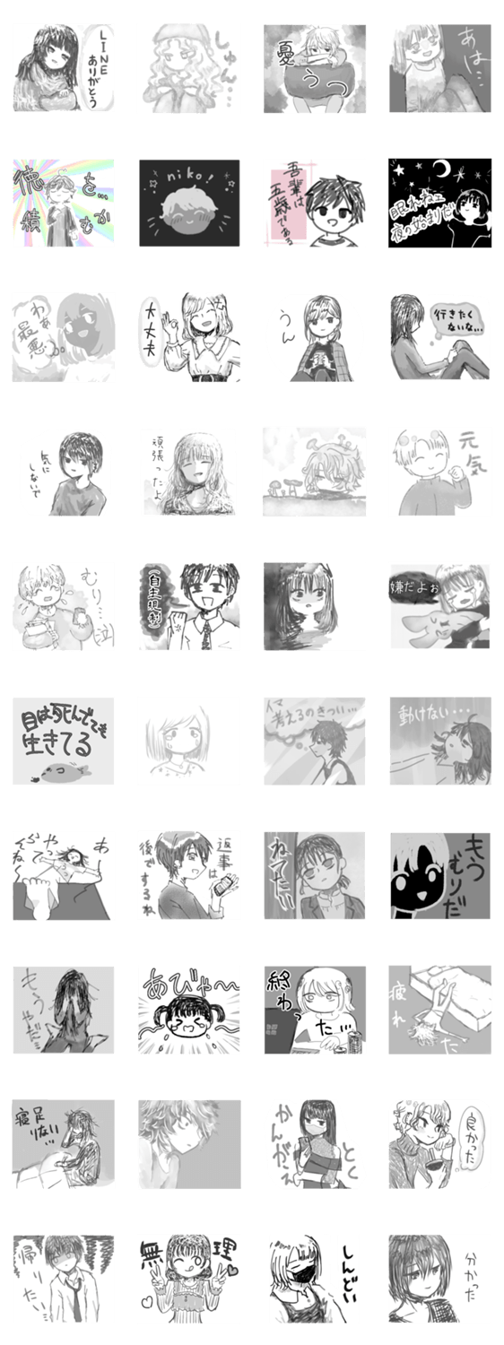 疲れた心とモノクロスタンプ -LINEスタンプマニア