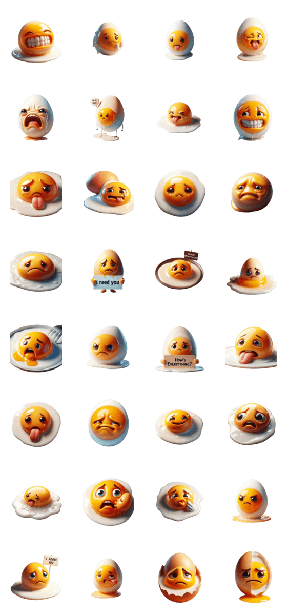 "面白い目玉焼きのスタンプ、目玉焼き、面白い、表現力豊か、イラスト、ユーモア、LINEスタンプ、