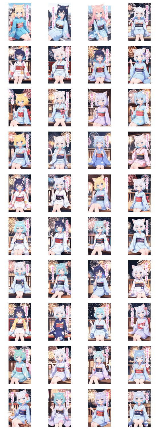花火を楽しむ猫の女の子BIGスタンプ -LINEスタンプマニア