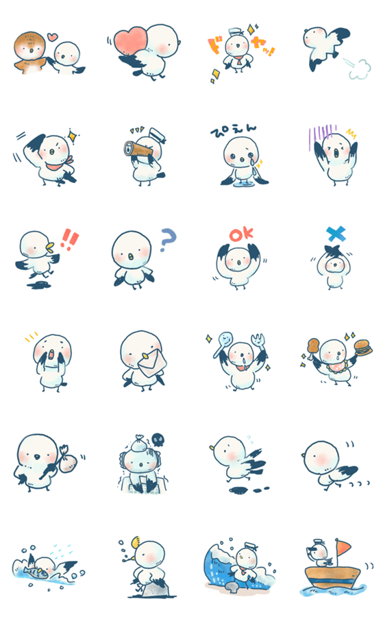 かわいいかもめの日常使いしやすいLINEスタンプ!小鳥好きさんやかもめ好きさんにどんどん送ってね!