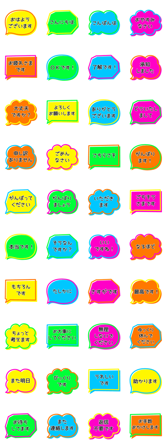 蛍光ふきだし、敬語&あいさつスタンプです。 ビビッド/カラフル/派手/毎日/日常/使える/見やすい