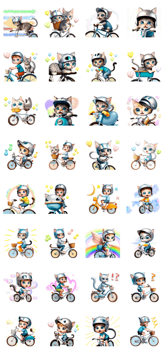 アニメ猫♡女の子♡男の子♡ 今日も元気に自転車に乗る☆ 競輪/ケイリン/競技/スポーツ/ねこ/応援/ファン/推し/マンガ/アレンジ/リアル/仕事/通勤/送迎/かわいい/日常