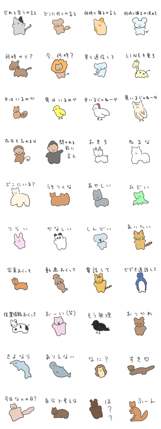 人への本音スタンプ どうぶつ