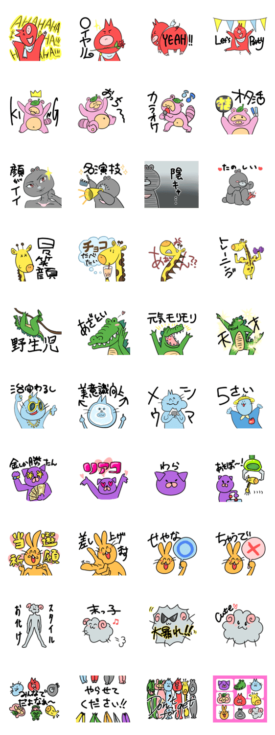6匹だったり9匹だったり賑やか仲良しアニマルたちのスタンプです。