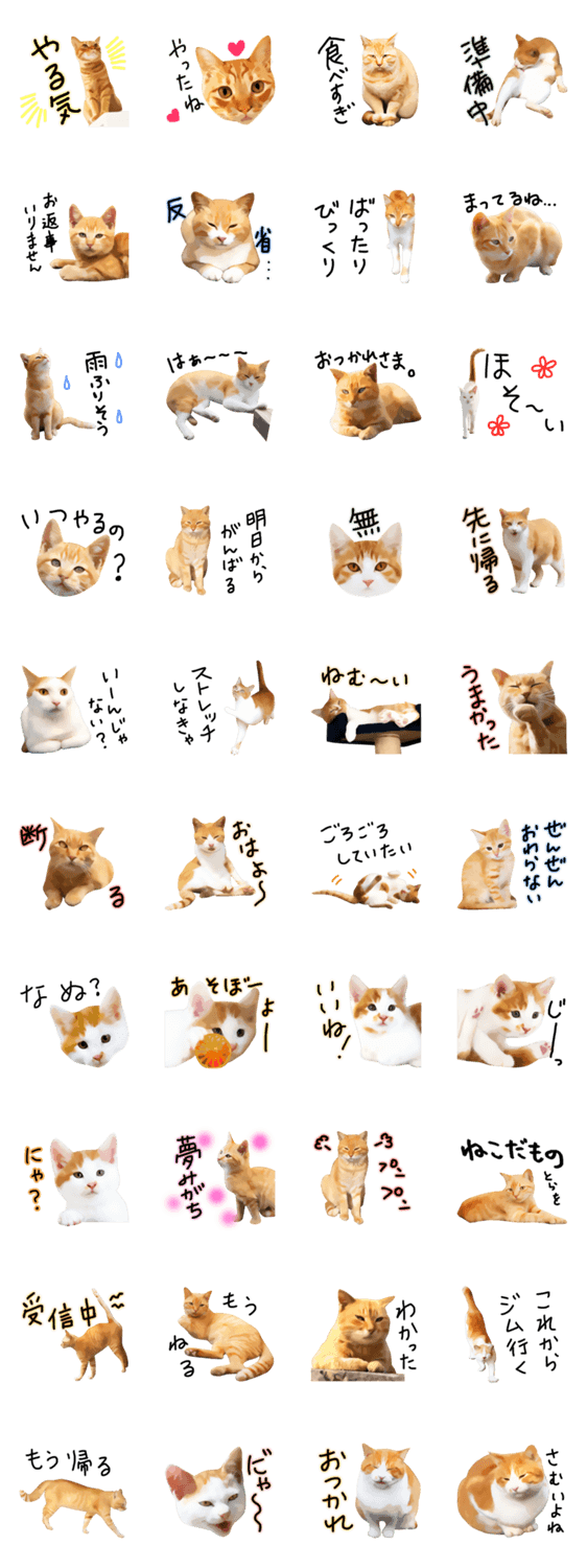 かわいい茶トラと茶白の猫たちが、ゆるいメッセージを伝えます。日常の使いやすい一言をぜひ使ってくださいね!