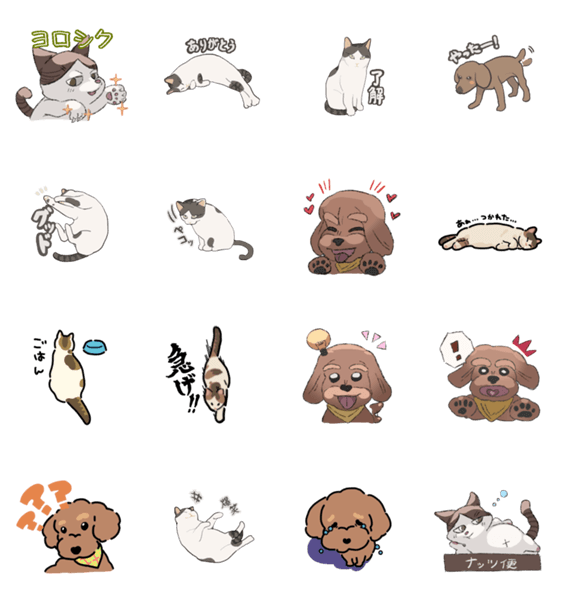 ナッツとぽん太のスタンプ(イラストver) ウチの猫と犬のスタンプ
