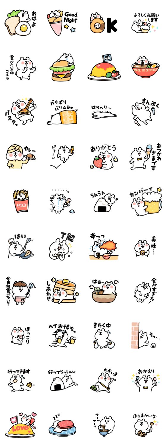 食べ物たくさん!グルメスタンプ特集用に描き下ろしたゆるくまさんスタンプです♪