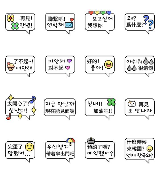 ピクセル吹き出し 3 (韓国語/台湾語) -LINEスタンプマニア