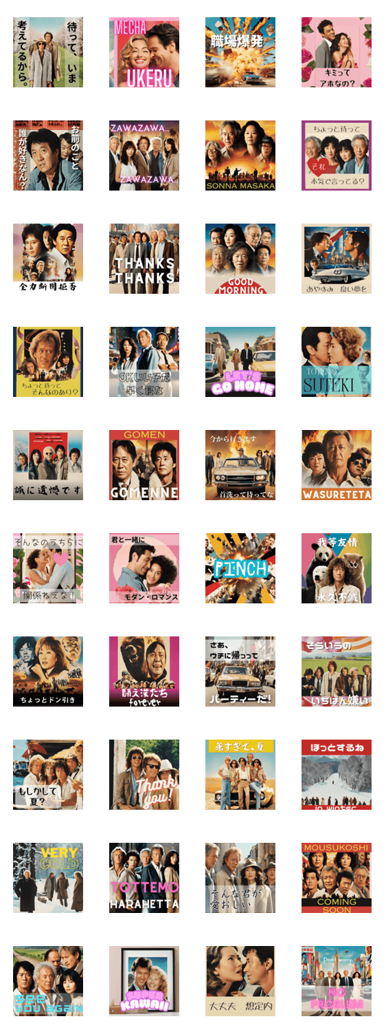 架空映画のポスター風スタンプです。ギャグ/面白い/英語/ユニーク/シュール/ネタ/煽り