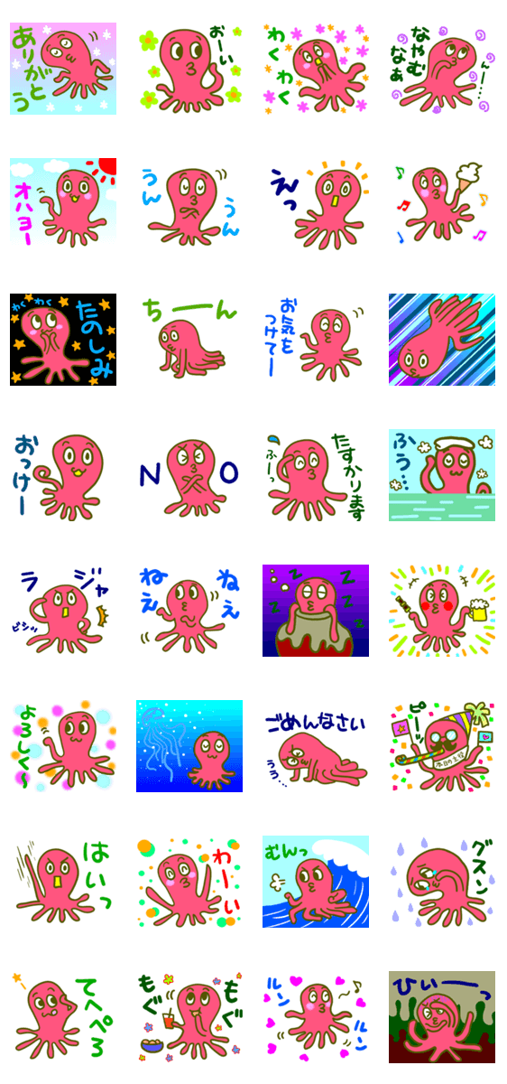 タコのハチ兵衛ことハッチャンのいろいろ使えるスタンプです。