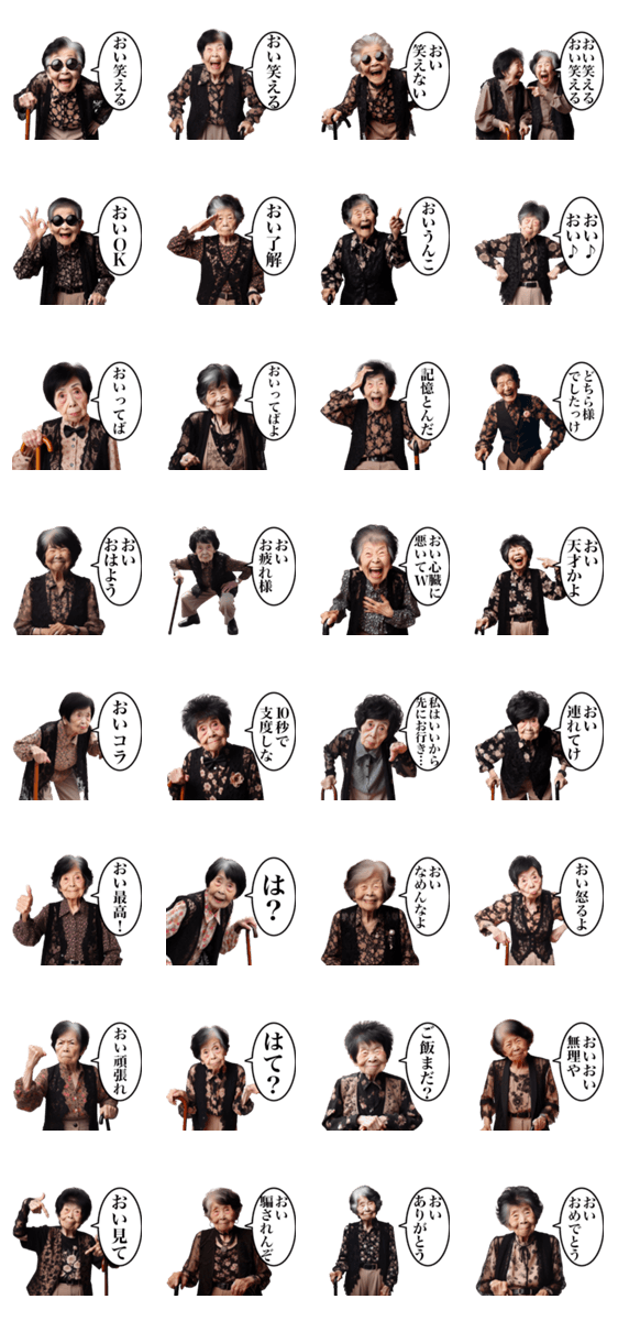 おばあちゃんの使えるおもしろいスタンプ。祖母/おばあさん/婆さん/SNS/流行語/ネタ