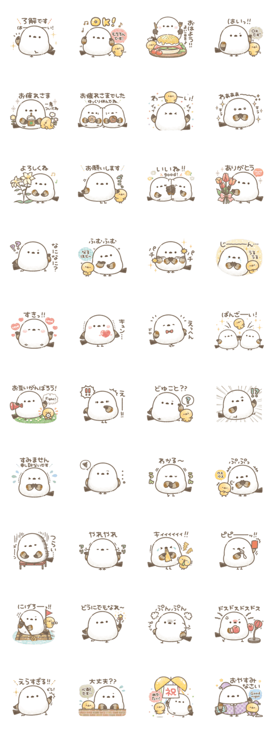 もちもちなシマエナガの、喜怒哀楽のいろいろな感情を表現できるスタンプです!日常会話や挨拶にも使えます♪