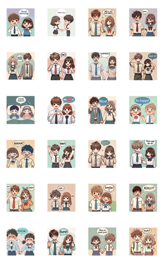 カップル 学生 かわいい -LINEスタンプマニア
