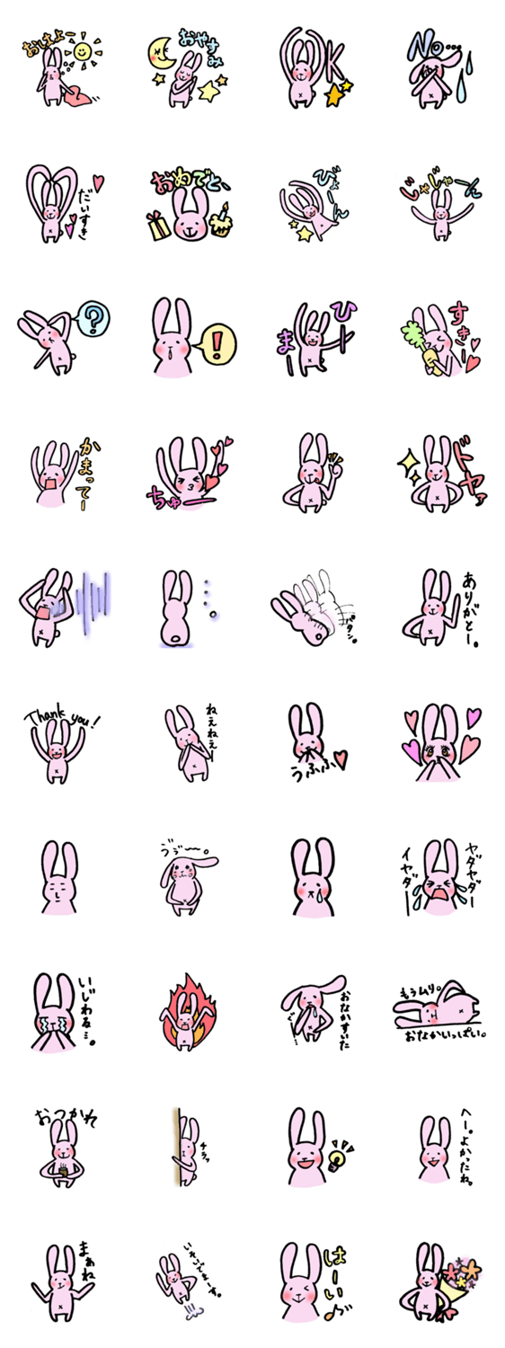 手はびょーんと長いけれど、足はちょこんと短いうさぎさんのスタンプです。