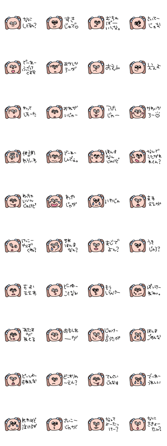 岡山弁強めなスタンプです♡ᴖ ̫ᴖ ⋆⁺₊˚ 『◠‿◠:ボクたちの"福笑い"すたんぷ』 『◠‿◠:イヌちょすのエモジ』もあります♪ (とても=ぼっけー/でーれー)