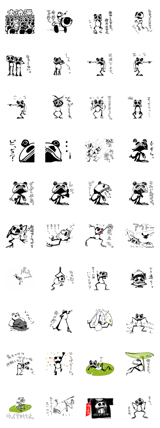 待ち合わせの時に役立つ、パンダ模様のかえるラインスタンプです。 注)パンダが、かえるではありません。