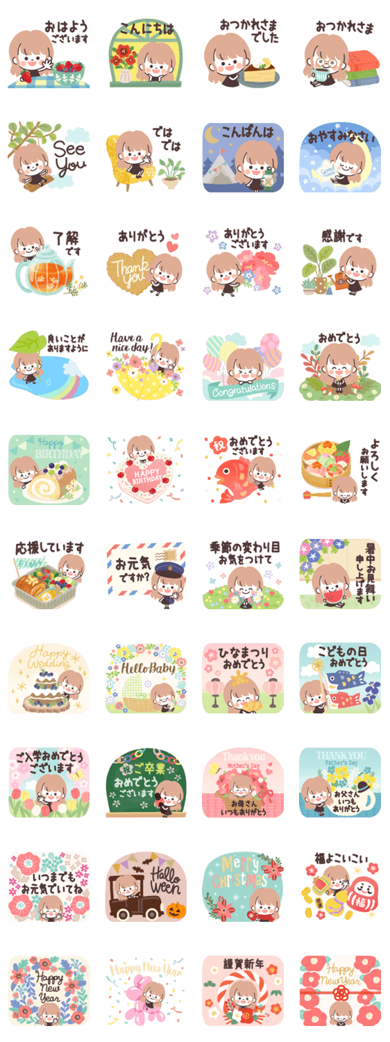甘さ控えめ大人女子♪ロングちゃん。年中ずっと気持ち伝える.毎日のあいさつ.日常の思いやり♪新生活.お祝い.正月.カップル.ママ友.家族.挨拶.丁寧