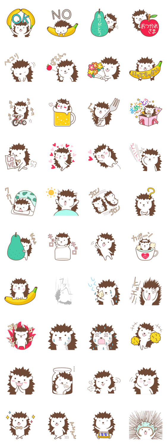 日常の挨拶やお返事などに使えるかわいいハリネズミのスタンプです。