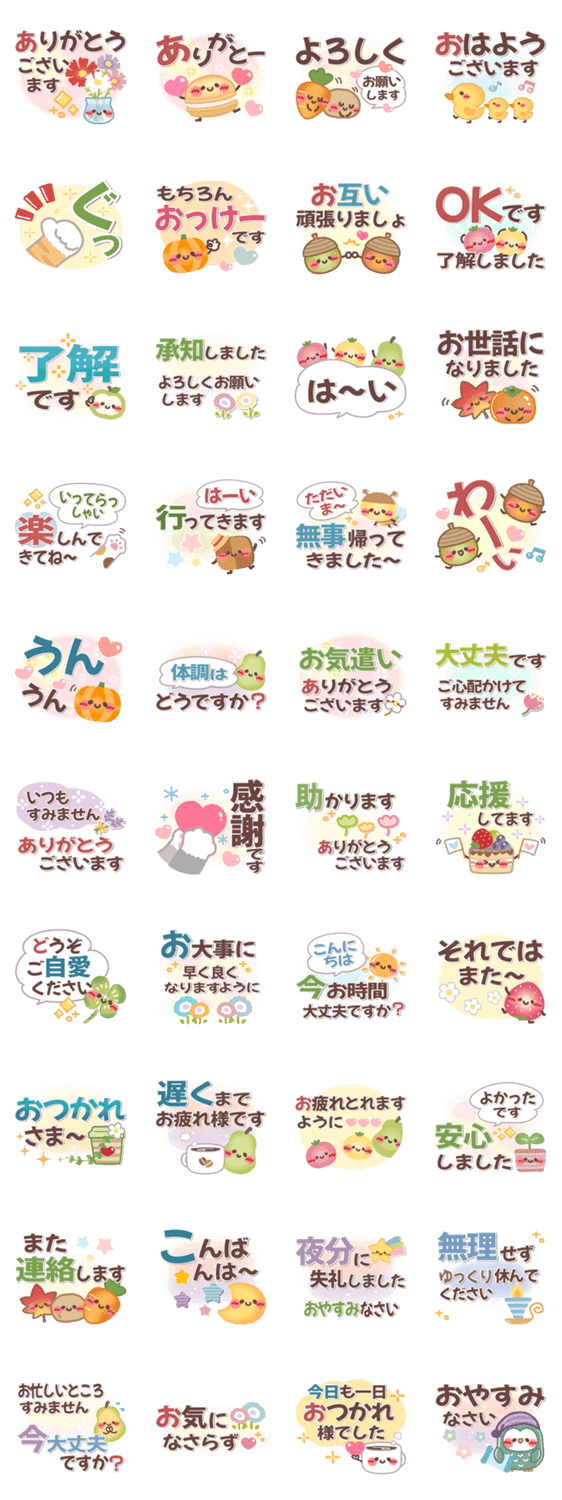 気遣いの言葉盛りだくさん!一回で伝わる便利なスタンプです。敬語/秋/思いやり/挨拶/デカ文字/日常/吹き出し/・食べ物