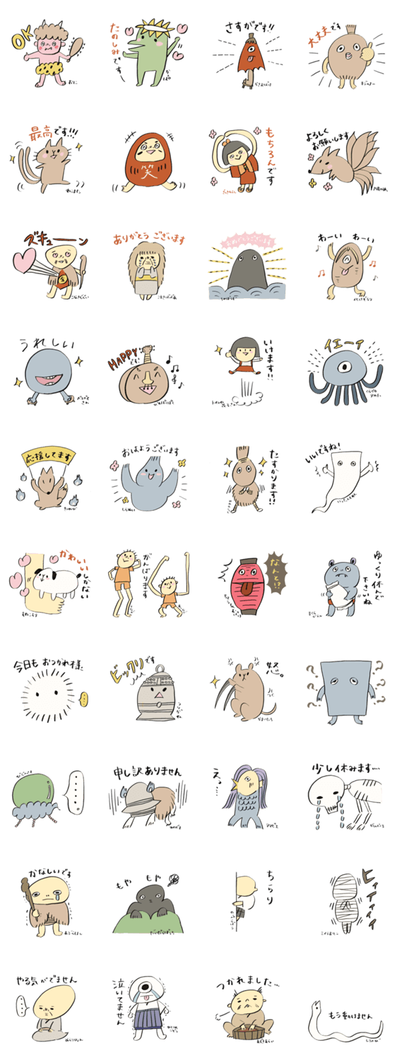 色々な可愛い妖怪スタンプ。使いやすい敬語にしました!