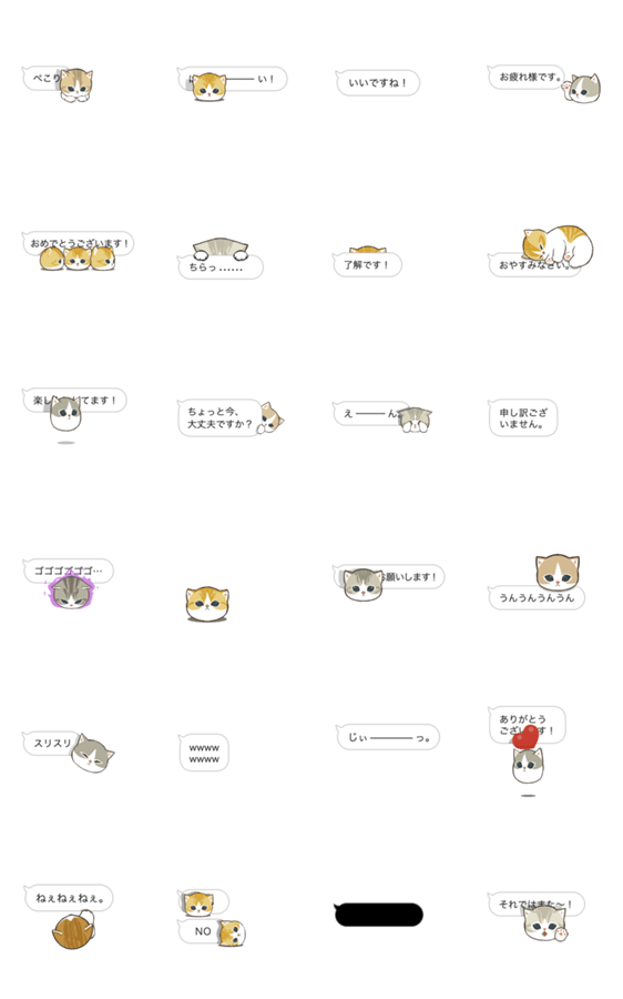 会話を邪魔するにゃー。 ユーザーの方がびっくりするように、あえて一コマ目はにゃんこが隠れている仕様にしているものがありますのでご注意ください。