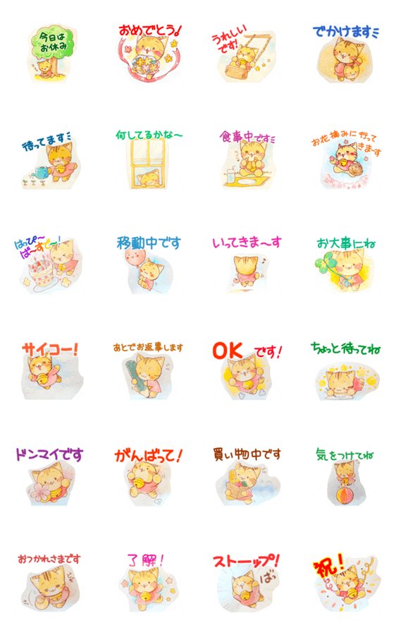 すずにゃんの水彩メッセージカード -LINEスタンプマニア