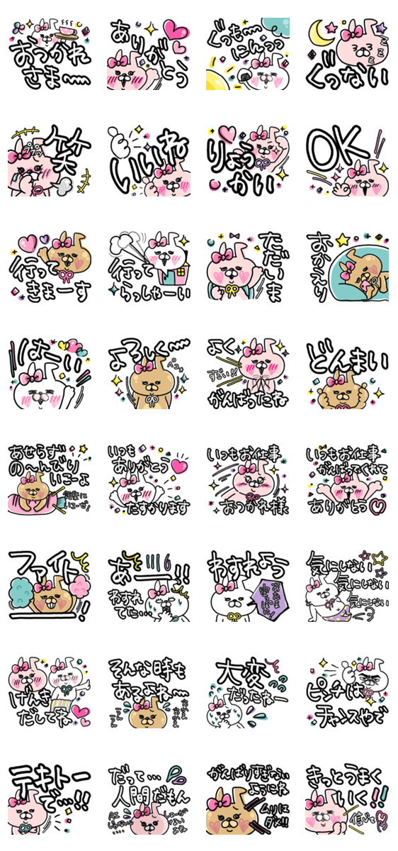 ポジティブ&気遣いの言葉入りでか文字スタンプ+*♥!!Talkを明るく前向きに+*♡!!うさぎ/ガングロ/ポジティブ/家族/同僚/友達/挨拶/でか文字/ママ/仕事/丁寧/ママ友/気遣い