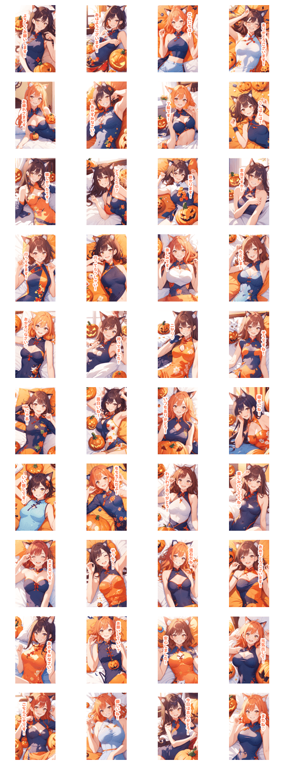 南瓜とチャイナドレスの猫女子BIGスタンプ -LINEスタンプマニア