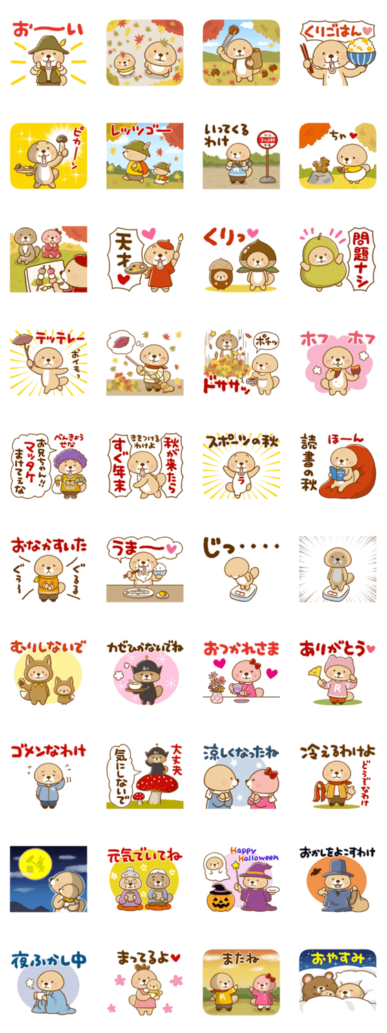ラッコさんの楽しい秋編第三弾!秋の味覚/食欲の秋/読書の秋/スポーツの秋/お月見/敬老の日/ハロウィン/など秋のイベント盛りだくさんです!