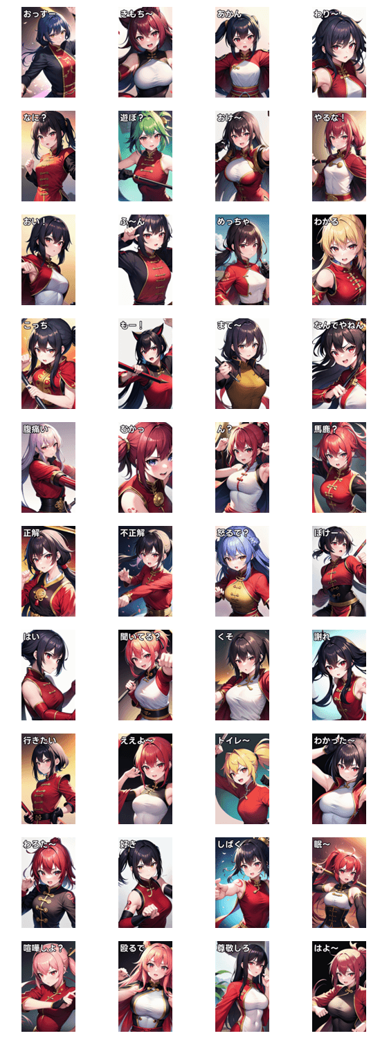 槍を持つタトゥーカンフー女の子 -LINEスタンプマニア