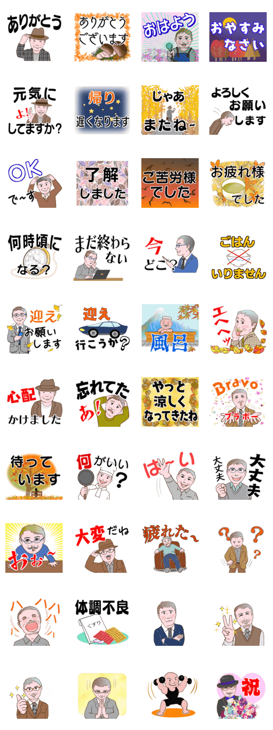 大きな文字で読みやすい、上品で誰にでも送れる、シニア、中高年、お父さん、おじさん、おじいちゃん、日常生活、挨拶、お祝い、連絡、秋