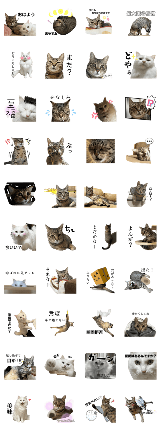 喜怒哀楽が分かりやすい猫達の、日常で使える写真スタンプです。
