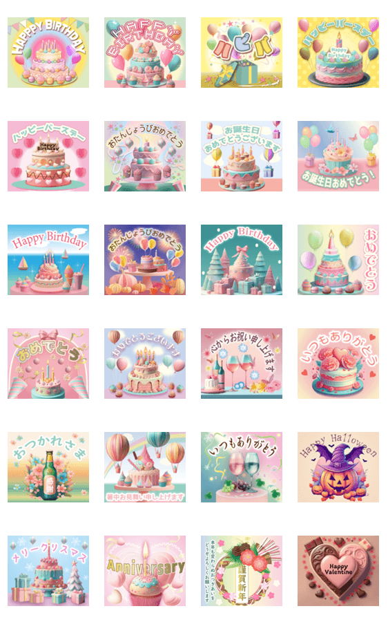 パステルでかわいい!季節のイベントやお祝い・誕生日・クリスマス・ハロウィン・母の日・父の日・敬老の日・正月・バレンタイン・入学・卒業・出産・ハピバ・おめでとう