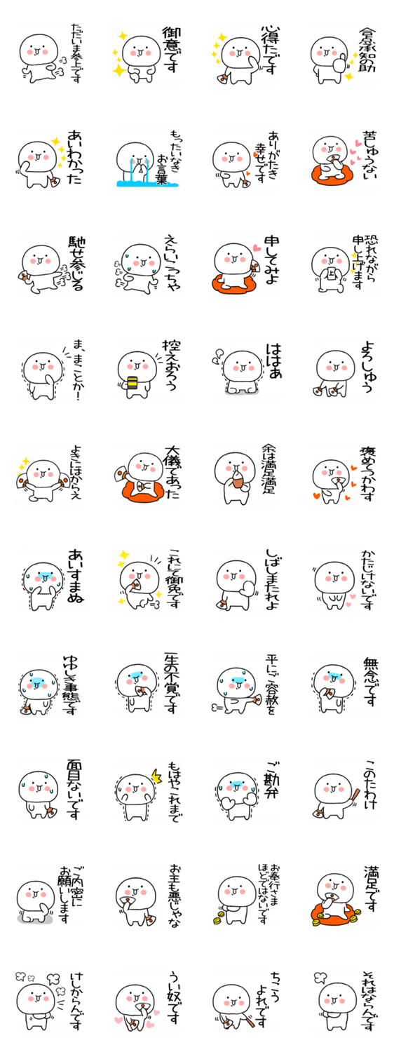 しろくてまるいキャラの透明な吹き出しスタンプ★武士語くん もるきゅた作