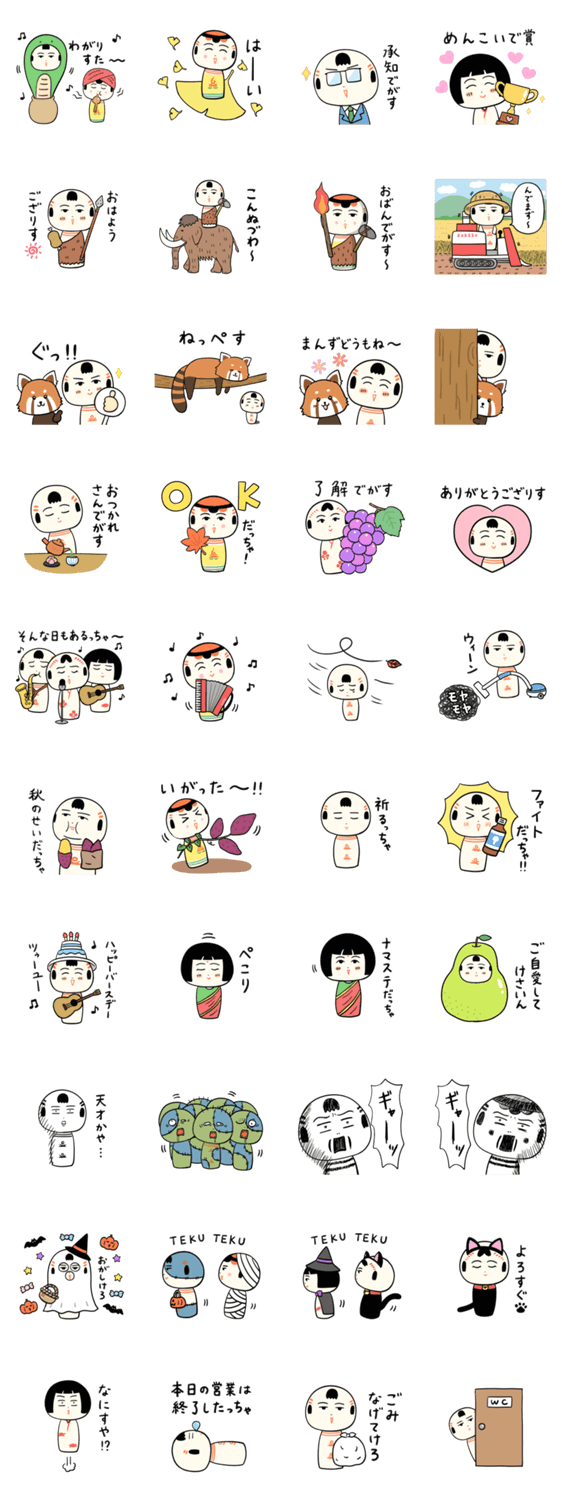 いぎなしなまってる「仙台弁こけし」シリーズ第42弾だっちゃ! 実りの秋、食欲の秋だなや〜 ハロウィン多め♪新キャラのレッサーパンダも登場だっちゃ!